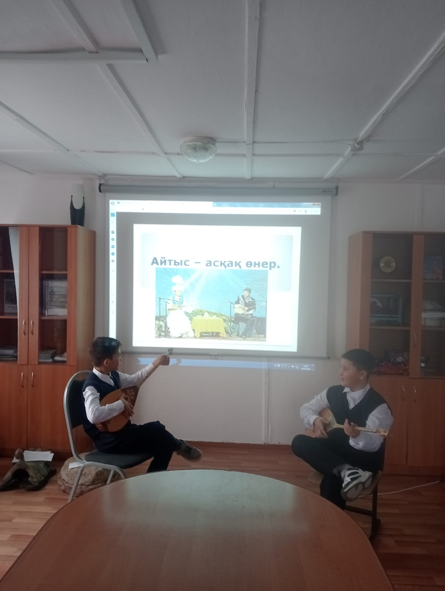 "Төрт тоқсан - төрт өнер" жобасы бойынша "Ақындар айтысы" іс-шарасын музыка пәнінің мұғалімі Тажибаева Г.К. өткізді. Қазақ әдебиеті мен фольклорының поэтикалық жанры, халық ауыз әдебиетінің танымал түріне тоқталып өтті.