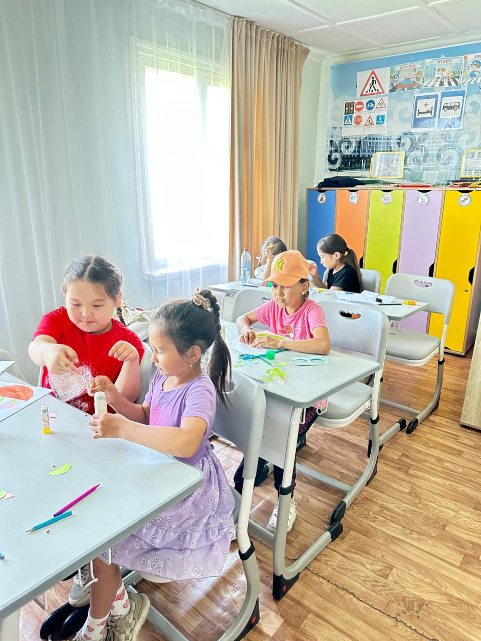 Балалар бір-біріне көмектесіп, қажетті құралдарды (қайшы, желім, қарындаш) кезектесіп пайдаланып, ынтымақтастықта жұмыс істеді. Көңілді әңгіме мен күлкіге толы ортада балалар шығармашылық қабілеттерін дамытып қана қоймай, бір-бірімен жақсы қарым-қатынас орнатты.